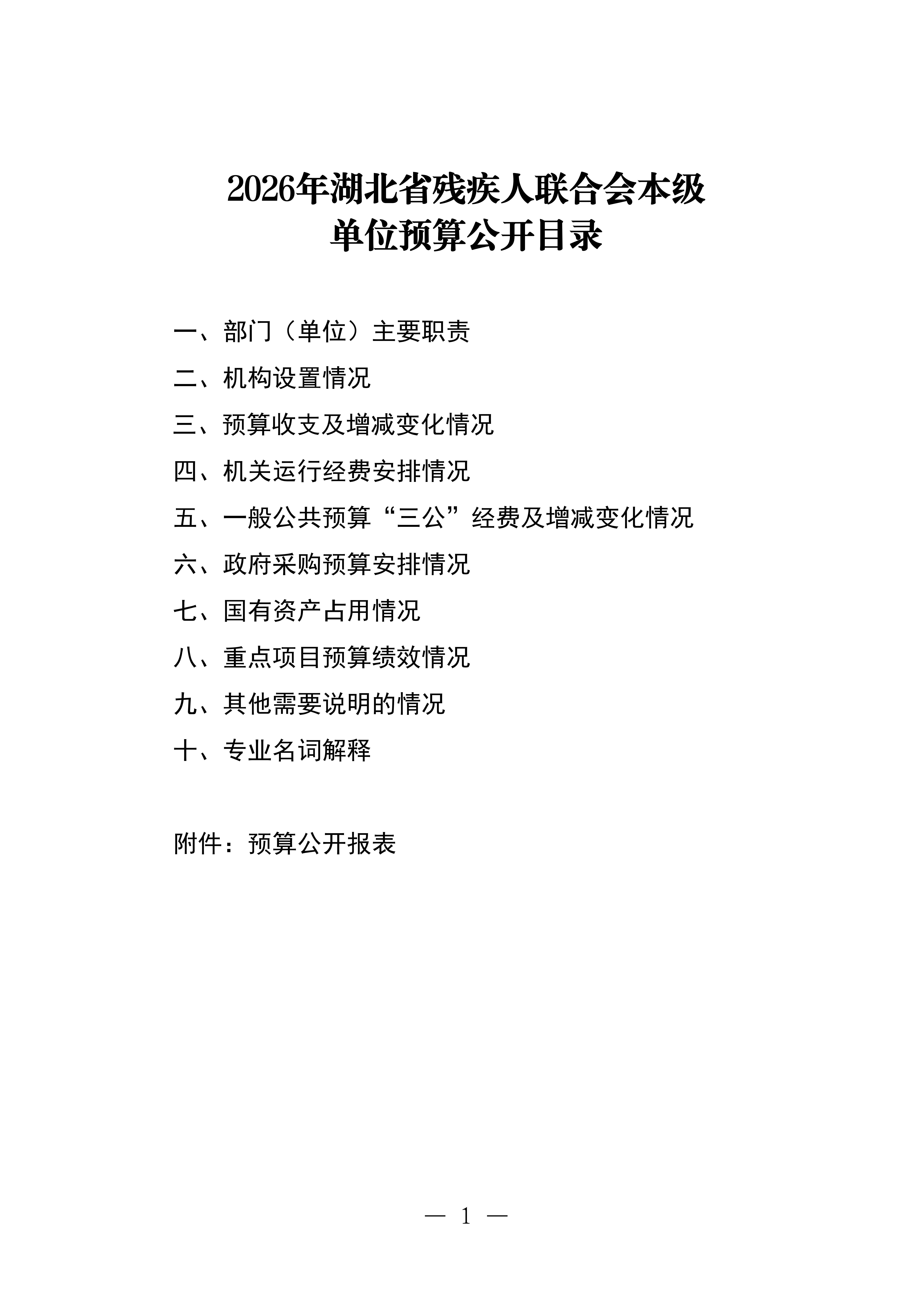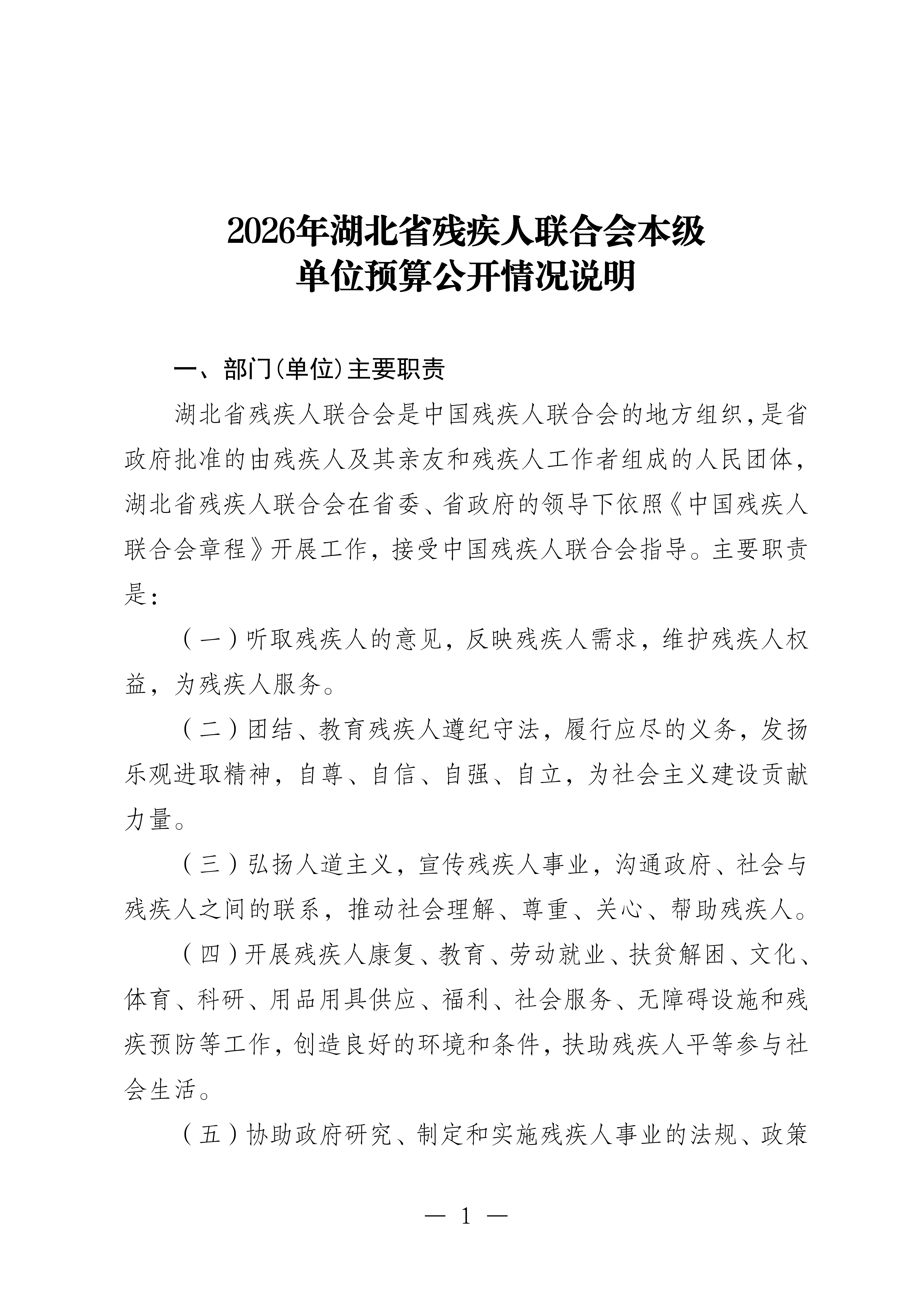 2026年湖北省残疾人联合会本级单位预算公开目录