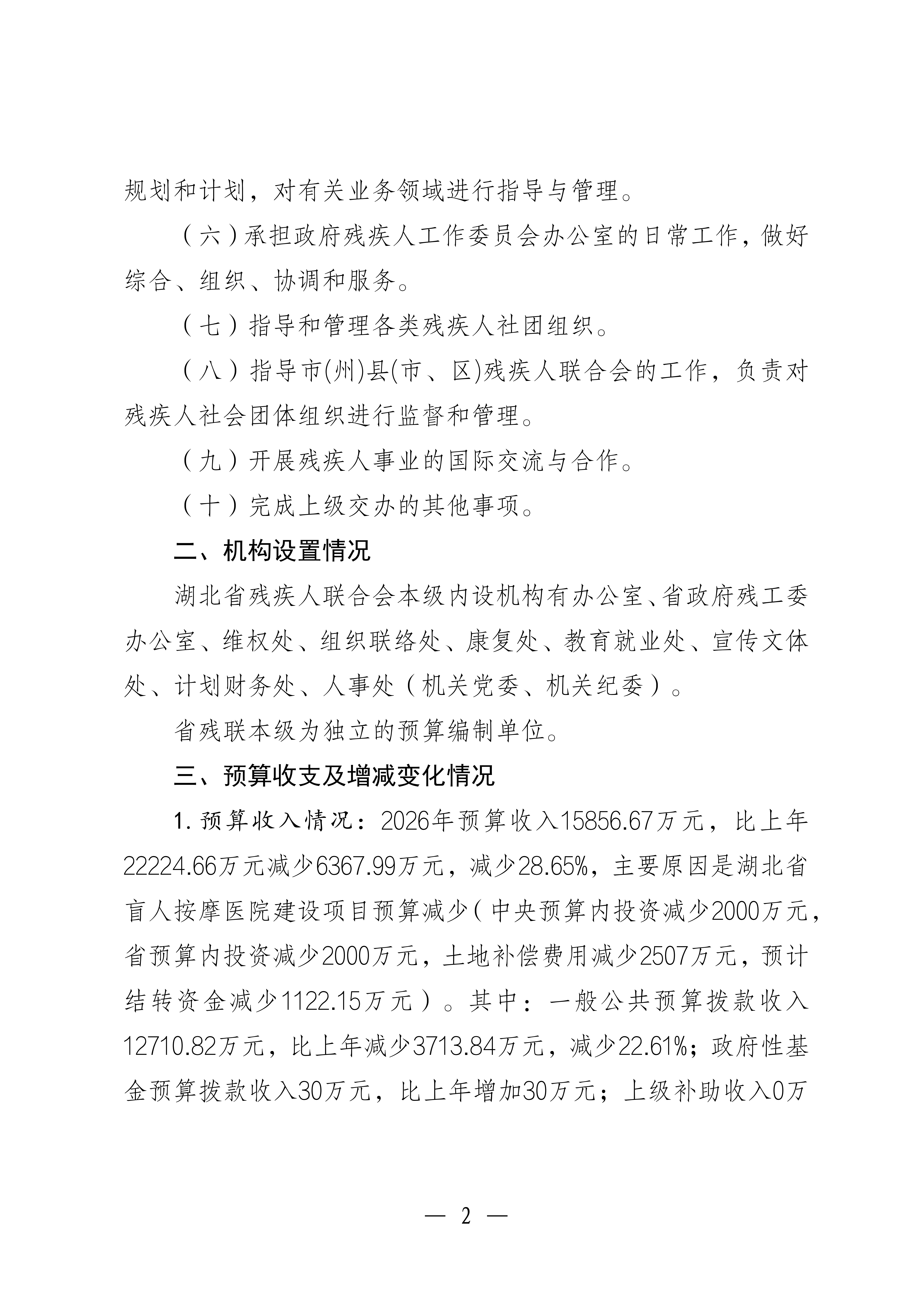2026 湖北省 残疾人联合会 预算 公开